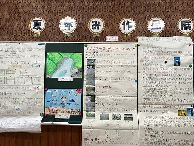 夏休み作品展が始まりました。夏休みに作成した児童の作品が展示してあります。参観日中にも展示してありますので、どうぞご覧ください。力作がそろっています。