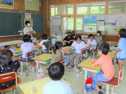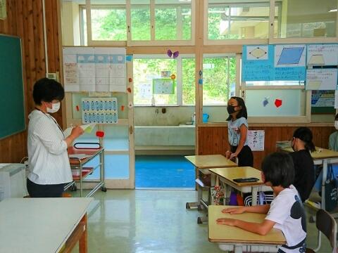 8月26日(木) 1校時に第2学期始業式を行い、2学期が始まりました。2年生と4年生の代表児童が2学期に頑張ることを発表しました。校長は、2学期に頑張ることを決めておくこと、新型コロナウイルス感染症対策をしっかり取り組むことについて話しました。また、生徒指導部は「あいさつ運動」について、保健体育部は「睡眠の大切さ」と「消毒の徹底」について話しました。