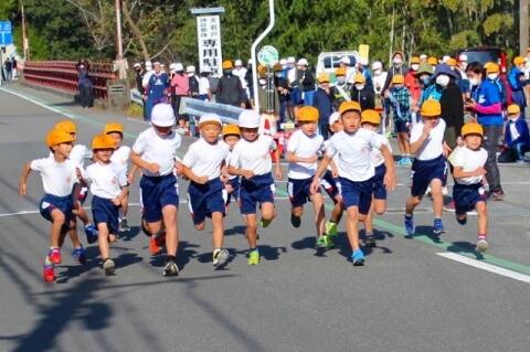 11月27日(金) 秋晴れの下、持久走大会を実施しました。天岩戸神社東本宮前をスタートし、1・2年生は900m、3・4年生は1200m、5・6年生は1500m、岩戸の町を全員が無事に走りきることができました。PTA役員の方々を始め、応援していただいた保護者や地域の方、道路の通行を待っていただいた方、作業を控えていただいた道路工事や建設工事関係の方等々、本当にありがとうございました。