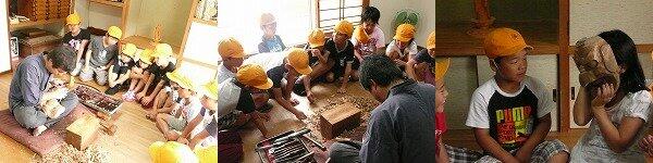 7月3日(水)、3年生29名が総合的な学習の時間の調べ学習として、校区内にある神楽面工房に行きました。1本の木のかたまりから面が彫られていくこと、その手際の良さに子どもたちは感動していました。算数で使ったコンパスが使われているのにもビックリしていました。神楽面工房の工藤様、お忙しい中をありがとうございました。