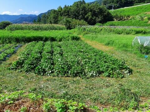 8月31日(月) 1・2年生は生活科で栽培しているサツマイモ畑の草取りをしました。周りの草は畑をご提供くださっている方が事前に刈ってくださっていたので、畑の中の草を取ったり、つる返ししたりしました。大きなサツマイモができるといいなあ。秋の収穫が楽しみです。