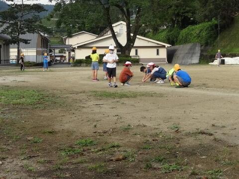 9月14日(月) 先週から子ども達は朝のボランティア活動として運動場の草抜きを行っています。朝、登校してきたらランドセルや荷物を運動場や靴箱に置いて、登校班ごとに5分間だけ草抜きをします。その後、各教室へ上がります。運動会へ向けての取組ですが、自分たちの運動会という意識も高まっています。