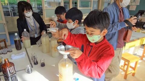 10月20日(火) 5年生が天岩戸商工会女性部の方々と一緒にEM菌作りをしました。プールに入れたりお家の台所や洗面所などの水回りにEM菌を流したりすると、詰まりやぬるぬるがなくなくなるそうで、自然に優しく、環境保全につながるEM菌です。約2週間ほど発酵を待って、プールに入れる予定です。岩戸小学校ではこの学習を何年も続けています。この学習は、きれいな学校からきれいな地域へ、そしてきれいな心へとつながっています。