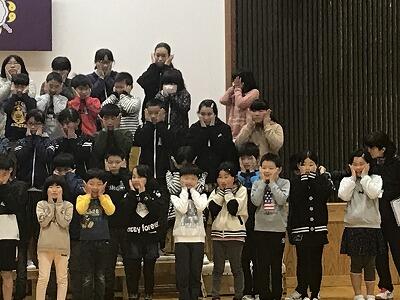 1月27日(月)の朝の時間に給食感謝集会が行われました!健康委員会の児童がこれまで練習してきた人形劇での発表でした。給食の大切さをクイズ形式で子ども達に示してくれました。