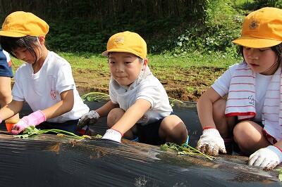 6月6日(木)5年生は田植えを行いました。佐藤重昭様の田んぼをお借りして、毎年田植え体験を行っています。今日は保護者の方々もお手伝いに来ていただき、普段はできない手植えの体験を行いました。