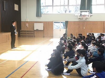 2月13日(水)火災の避難訓練が行われました。雨のため体育館への避難となりましたが、みんな真剣な態度で避難することができました。校長先生から一人でいる際の身の守り方についても話があり、『自分で自分の身を守ることの大切さ』を考えました。乾燥が続きます。火の取り扱いに注意していきましょう。
