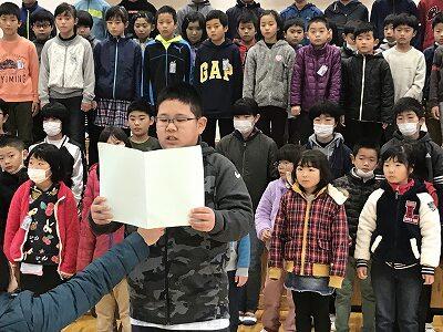 1月7日(月)岩戸小学校第3学期の始業式が行われました。最初に3年生の作文発表が行われました。校長先生の話の中では「冬休みに挨拶とお手伝いを頑張りましたか?」の問いかけに多くの子ども達が手をあげていました。最後に生徒指導主事から朝の挨拶がよくなった登校班の紹介があり、50数日の3学期を頑張りましょうと話がありました。地域・保護者の皆様、新年もよろしくお願いいたします。