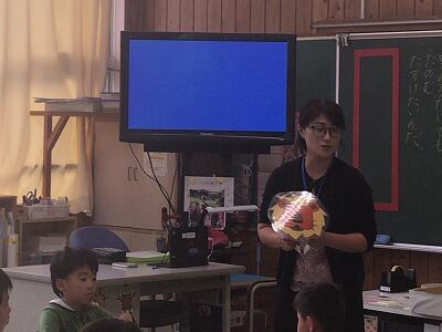 10月12日(金)に岩戸商工会婦人部の皆様に来ていただき5年生と一緒にEM菌に関する授業をしていただきました。EM菌と糖蜜、米のとぎ汁を混ぜて作りました。1ヶ月後にプールに投入する予定です。