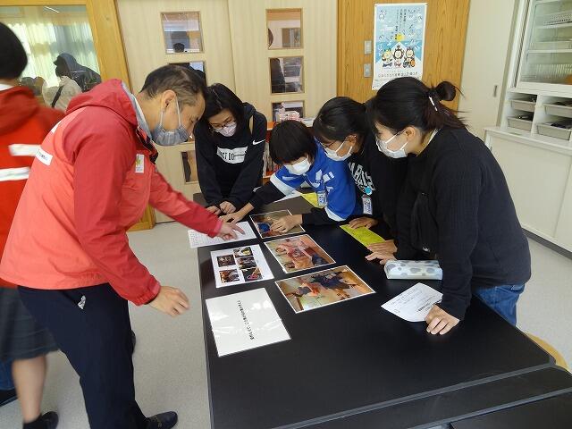 ◎3・4年生は、地域の方から神楽のお話を聞いた後、「えりもの作り」をしました。