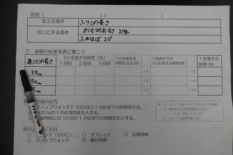 「ふりこの長さ」を比較して、ふりこが1往復する時間を調べました。