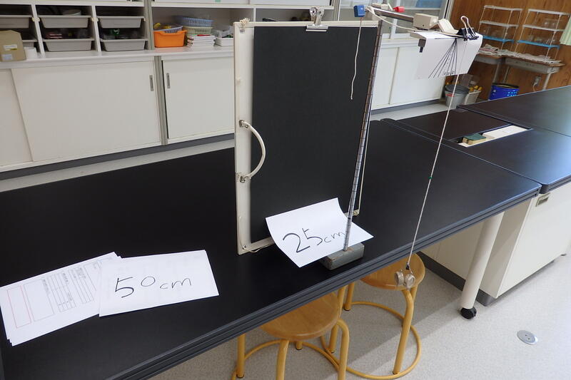 理科室では、5年生が「ふりこのきまり」を学習しました。