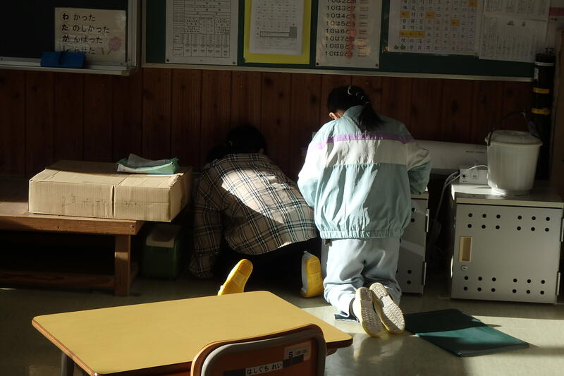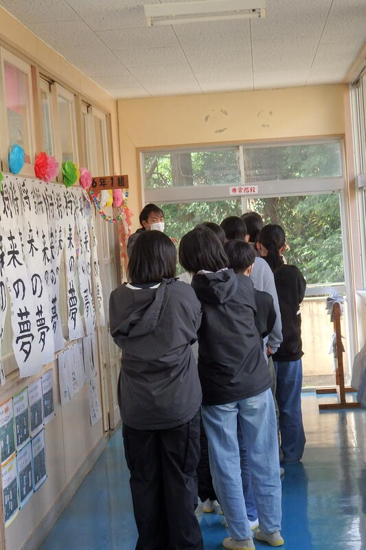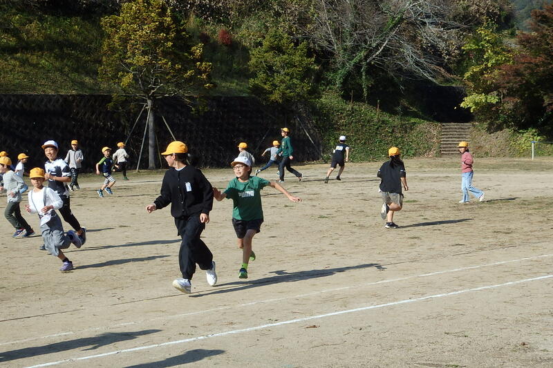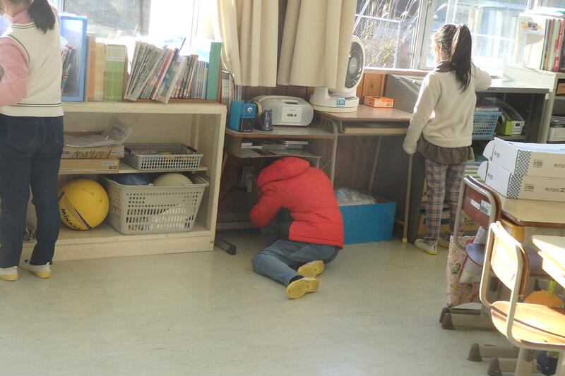 理科室や近くの音楽室で授業していた学年は、運動場に避難する訓練を行いました。