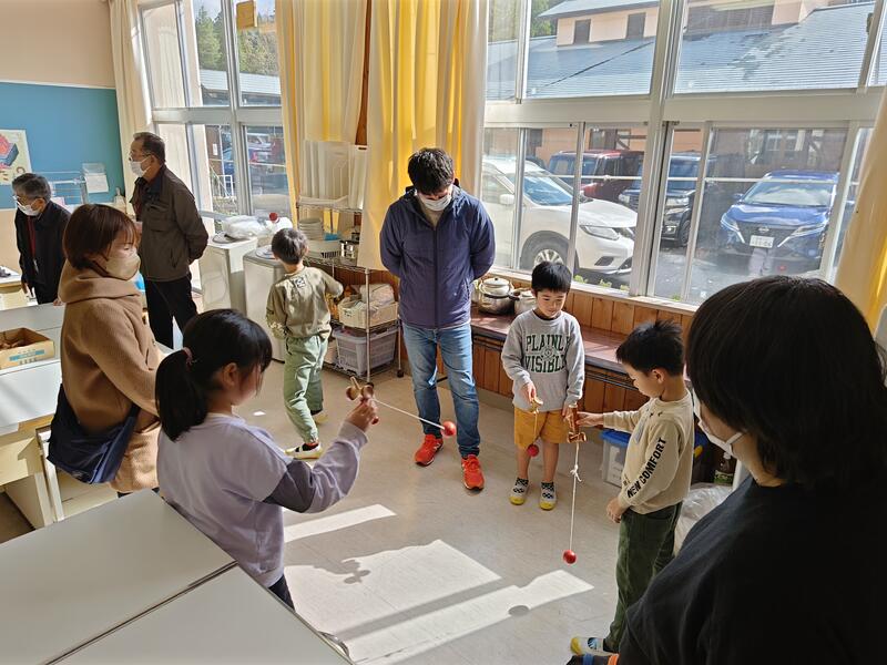 保護者も一緒になって昔の遊びを楽しんでいました。