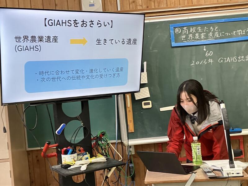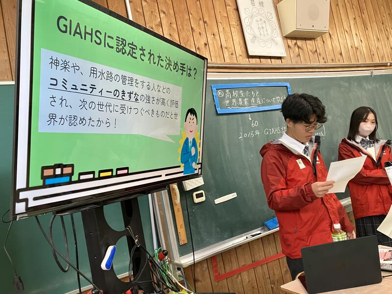 県立高千穂高等学校「GIAHSアカデミー」のみなさんを講師としてお招きし、世界農業遺産について分かりやすい説明を受けました。