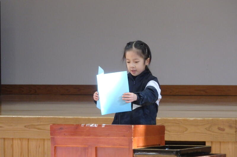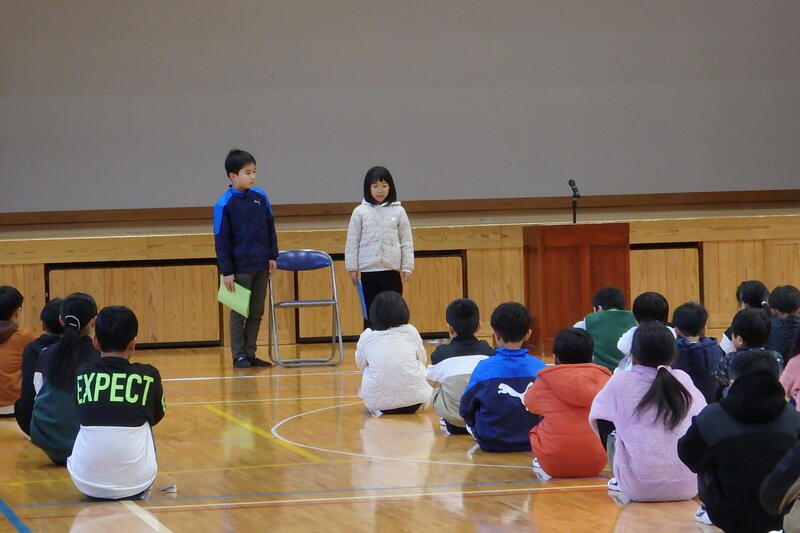 1年生は、2学期にがんばった勉強や運動のことを発表しました。