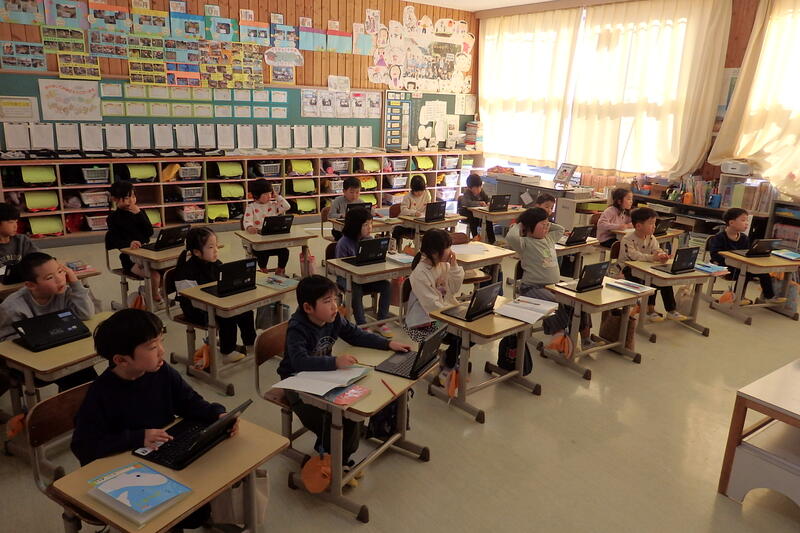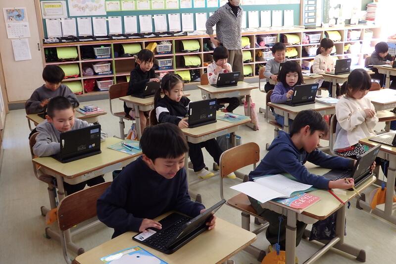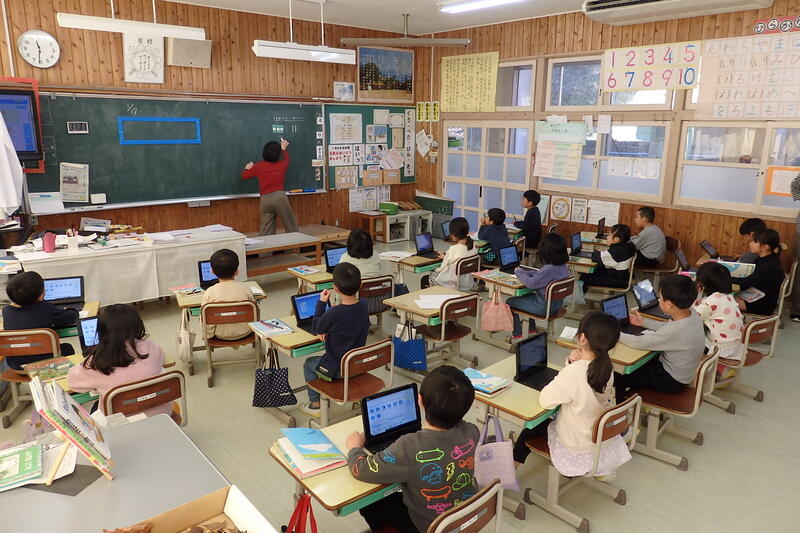 1年生が、タブレット端末を活用して大きな数を数えました。