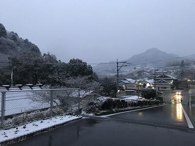 今朝は朝から雪が降っていました。岩戸小学校の雪景色です。