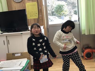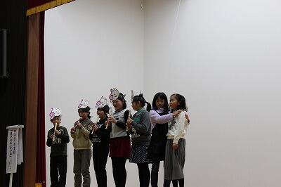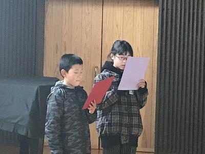 2月4日の学習発表会に向けて各学年練習を行っています。昼休みに練習の成果を職員室に来て披露してくれました。1年生です。