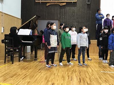 今日は全校合唱練習の2回目でした。インフルエンザの流行をおさえるため全員マスク着用でしたが、大きな声が出ていました。本番まで1週間、各学級での練習を約束して終わりました。2月4日(日)の学習発表会を楽しみにしておいてください。