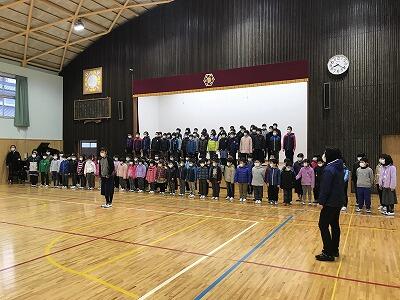 今日、3学期の始業式が行われました。転入生もあり、116名での3学期がスターとしました。2名の児童の作文発表があり新年の抱負を立派に述べてくれました。校長先生より「次の学年へ向けて振り返ったときに『頑張った』と胸を張れるような取組にしていきましょう」とお話がありました。頑張る3学期にしていきましょう。