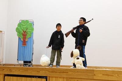 4年生は14名で方言劇「岩戸の子きつね」を演じました。高千穂弁満載の劇になりました。長いセリフもバッチリでした。劇の様子です。