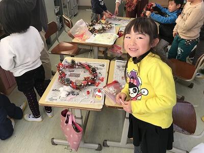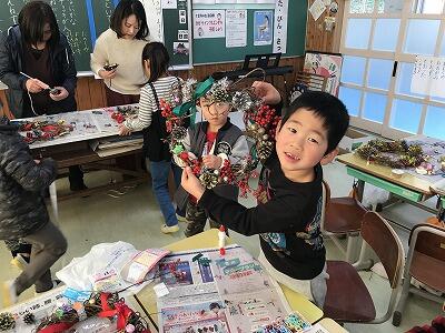 本日、1年生はイモのツルでつくったリース作りを行いました。工夫をしながら頑張ってつくっていました。素晴らしい作品ができました。
