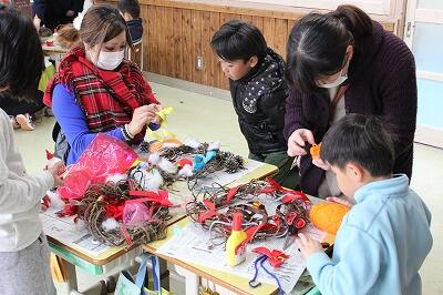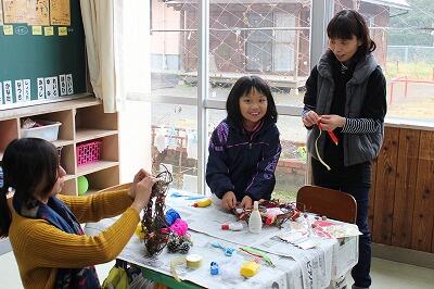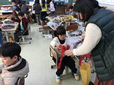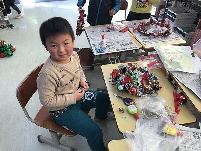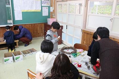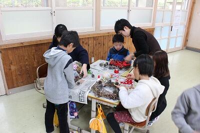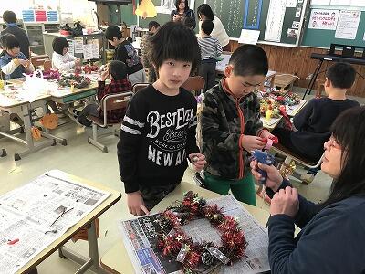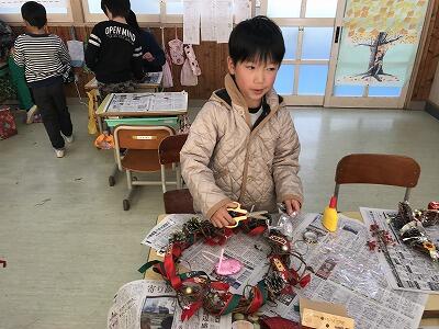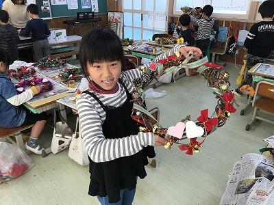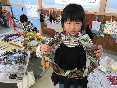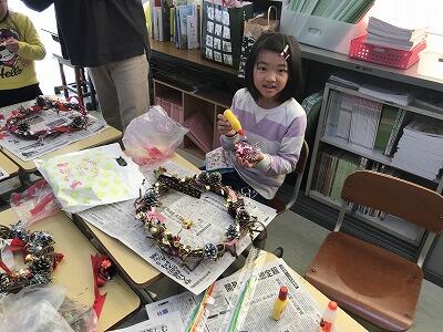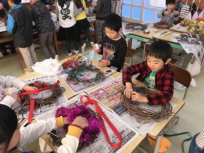 本日、1年生はイモのツルでつくったリース作りを行いました。工夫をしながら頑張ってつくっていました。素晴らしい作品ができました。