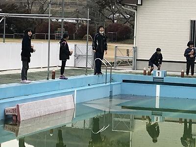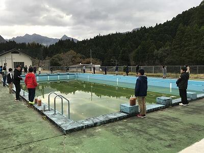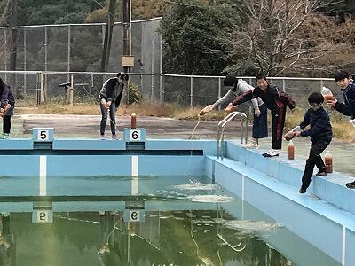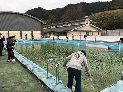 本日、6年生は岩戸地区婦人部の方々の協力を得て、作成したEM菌をプールに投入しました。川にも海にも優しいEM菌です。