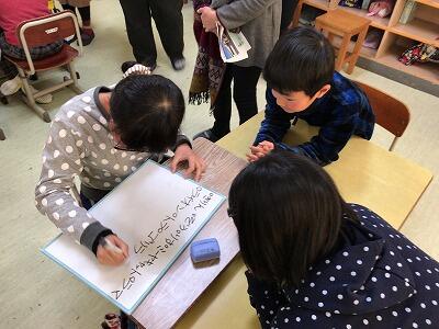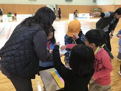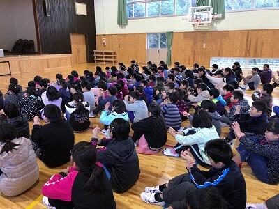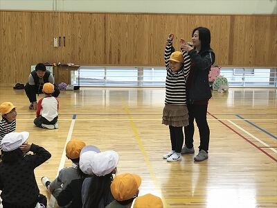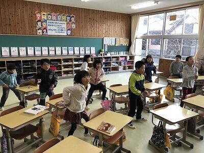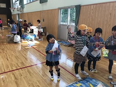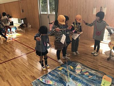 今日は天岩戸保育園から来年度の入学予定者を招待して『岩戸っ子フェスティバル』がありました。みんなでじゃんけん列車や1・2年生手作りのゲームをして楽しみました。