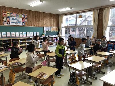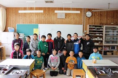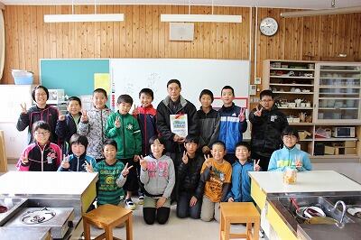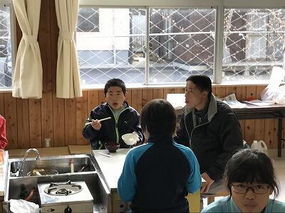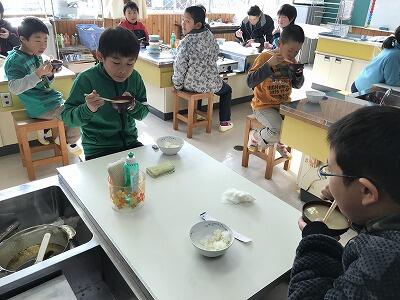 5年生は今年お米づくりを指導していただいた佐藤重昭さんを招待して、感謝の会を開きました。5年生がつくったお味噌汁とご飯で特別な昼食をいただきました。