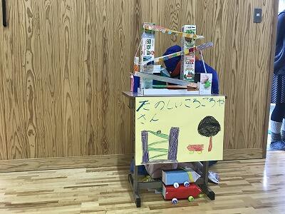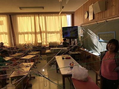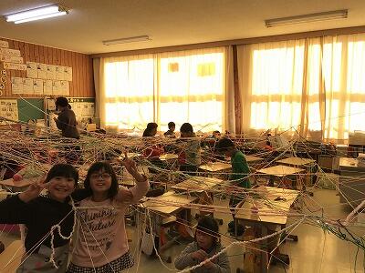 本日3年生は「ひもひもワールド」を行いました。3年生が大きな作品を先生と一緒に作り上げる姿はほほえましかったですよ。
