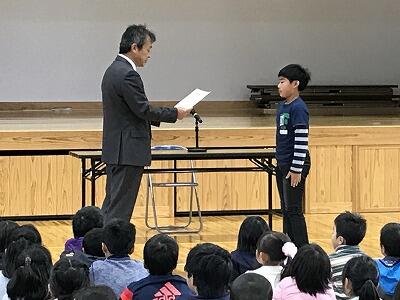 今日は、臨時全校集会が行われました。岩戸小学校の子どもたちは、JA全国女性組織協議会主催「フレミズ"わたしの一歩"作文コンクール」で優秀賞を受賞された佐藤鮎美さんの作文を聞くことができました。明るく前向きに生きることの素晴らしさを子どもたちも感じてくれたようです。その後、表彰も行われました。