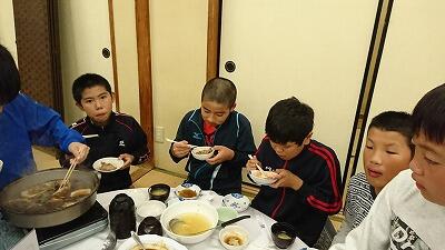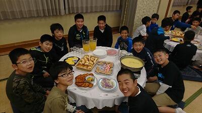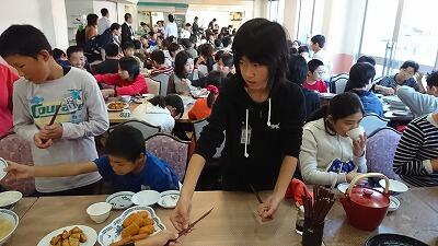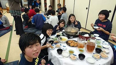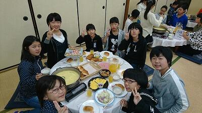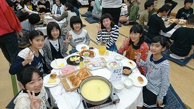 2日目、朝食の様子です。坂本大祈さんが食事のあいさつをを行いました。みんな元気です。今日は自主研修です。