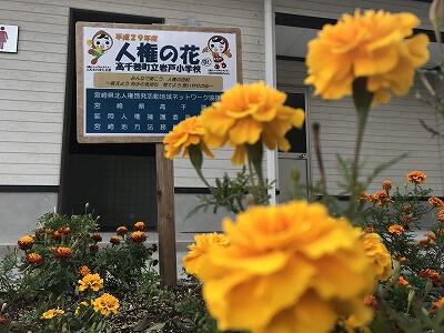 人権の花がきれいに咲いています。台風の影響でマリーゴールドは少し弱っていましたが、最近また元気に花を咲かせてくれています。サルビアは朝露のなかとてもきれいです。