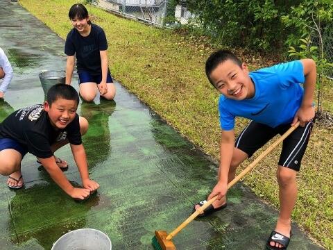 6月4日(木) 4・5・6年生でプール清掃をしました。天気がちょっと心配でしたが、きれいにすることができました。