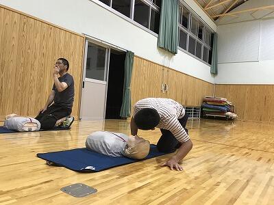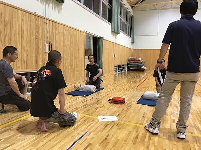 7月12日(水)19:30から家庭教育学級の開級式及び学校保健委員会が開かれました。広域消防署から職員に来ていただき、4名の指導者の下、PTAのみなさんが心肺蘇生法の講習を受講しました。和やかな雰囲気の中にも、真剣に取り組んでいただきました。参加した皆様ありがとうございました。