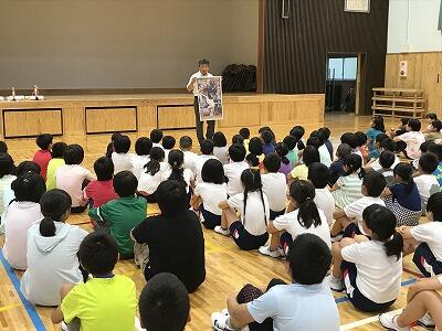 7月の保健目標は『夏を健康にすごそう』です。熱中症にならないために水分補給の方法や帽子の着用、そして規則正しい生活を送って『はやね・はやおき・朝ごはん』を実践することが各学級で説明されました。
