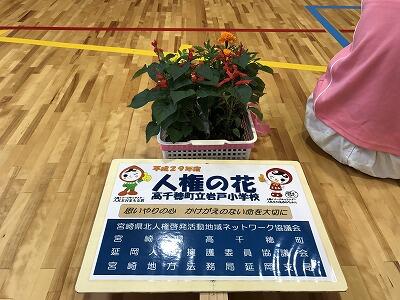 平成29年度『人権の花』運動における苗等の贈呈式が行われました。興梠副町長様をはじめ、宮崎地方法務局延岡市局長の服巻様からもご挨拶をいただきました。贈呈式の後、全校児童で人権の花として寄贈していただいた『サルビア』と『マリーゴールド』を植えました。これから大切に育てていきたいと思います。