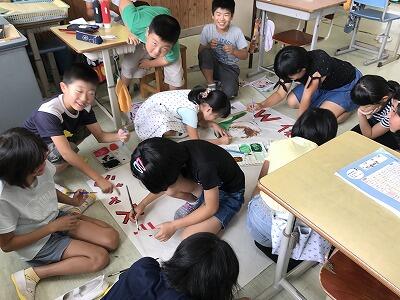 今年の岩戸小学校の運動会のスローガンは『かがやけ最高の運動会に向かってつっ走れ岩戸っ子』です。今日の3・4校時を使って5年生はスローガンづくり、6年生は団装飾を行いました。手作りの運動会が始まっています。本年度の運動会は10月1日(日)です。