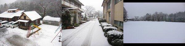 写真左は13日(木)午前中の中庭、右側の写真は午後の運動場の様子です。このくらい積もれば雪合戦ができたことでしょう。