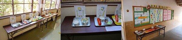 1月は給食感謝月間です。24日(金)に計画されていた給食感謝集会は、インフルエンザ蔓延を防ぐため中止となりましたが、保健室前の廊下には昭和20年代から現代までの給食の献立模型が展示されています。これを見ると、いかに今の給食が恵まれているかが分かります。子どもたちも関心をもって見に来ているようです。また、階段横の掲示板には、給食にかかわってくださっている方々に向けてのありがとうメッセージが掲示されています。