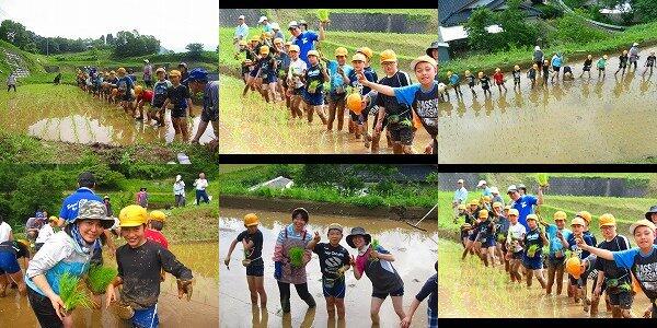 6月6日(金)、今年も五ケ村にある佐藤重昭さん宅の水田をお借りして、5年生が田植えの体験学習を行いました。等間隔に植えられるように、目印のついたロープを端で引っ張りながら植えていきました。おいしいお米ができるように、心を込めて水田の中に植えていきました。