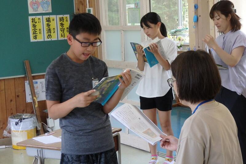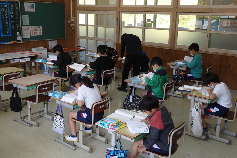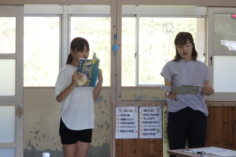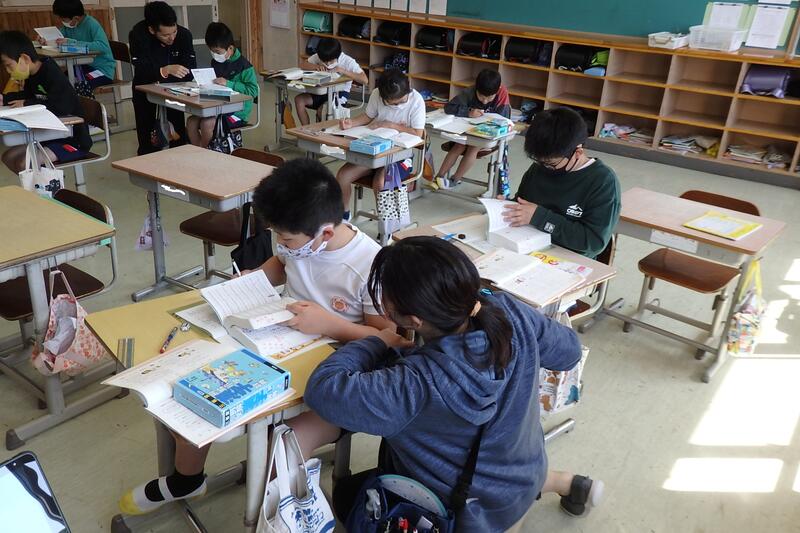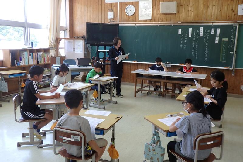はじめに、教科書の教材を音読してくださいました。プロの発声や強弱の付け方児童がくぎ付けでした。