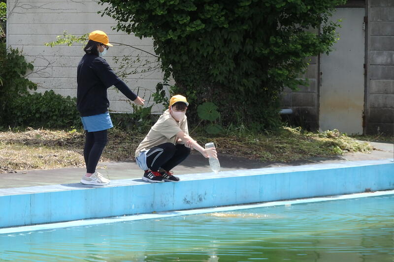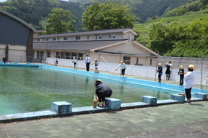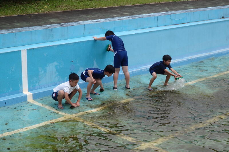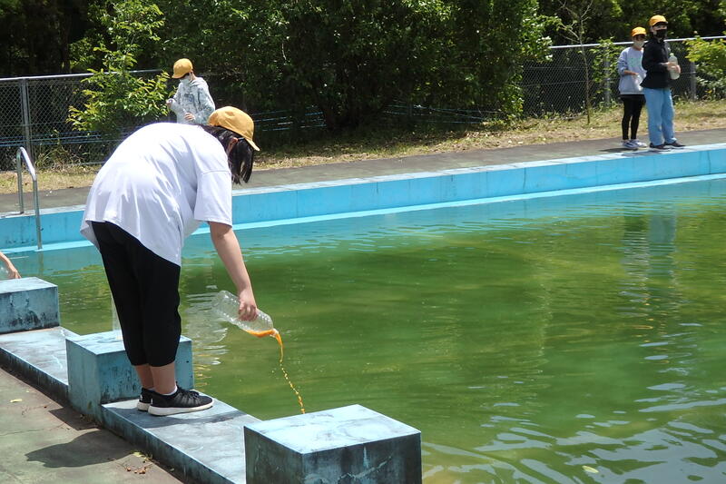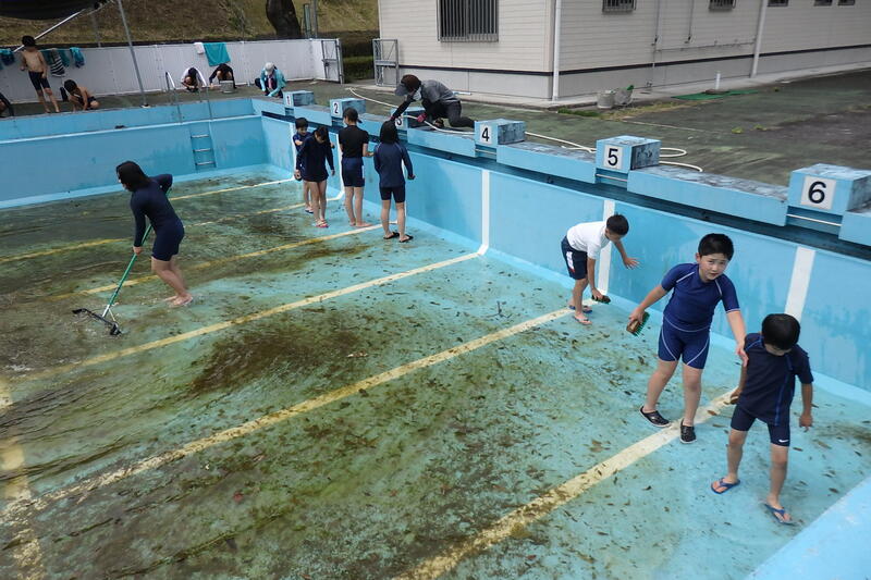 EM菌を数年間入れ続けているので、プール掃除前にも関わらず水がきれいでした。