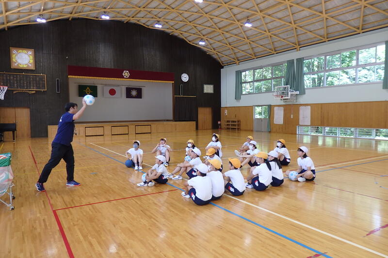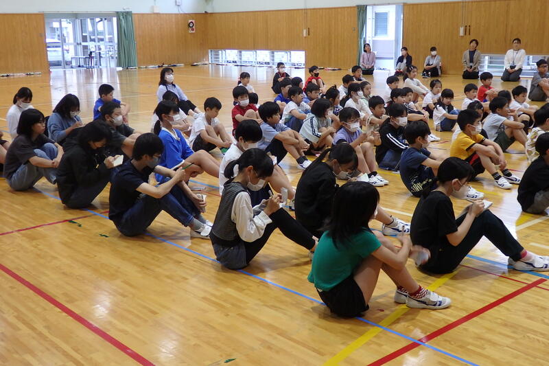 ドッジボールで盛り上がった後は、児童が考えたクイズに挑戦です。