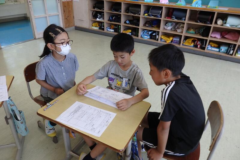 近くの友だちと話し合い、よりよいアイデアを考えました。