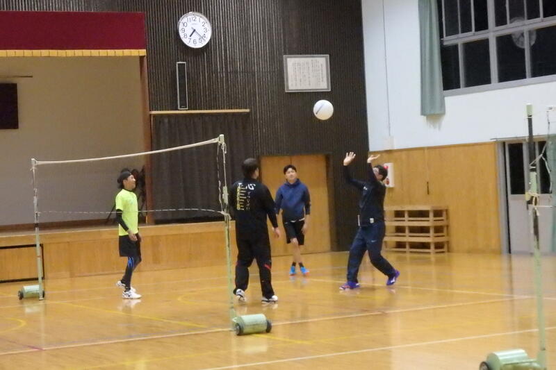 雨が降っていたので、ソフトボールを遠くに投げるイメージトレーニングをしました。