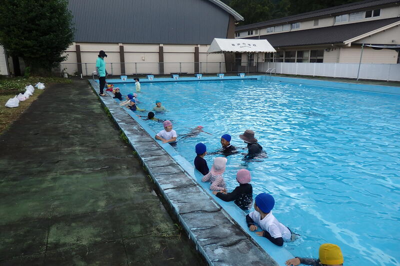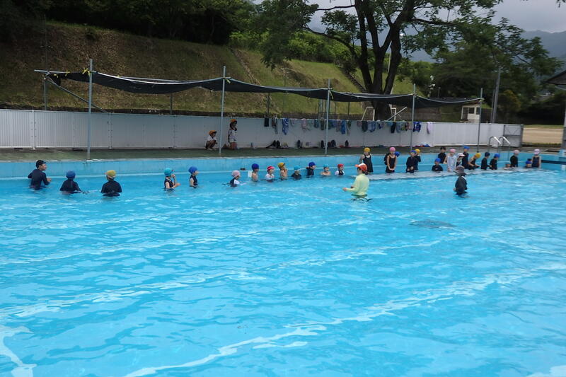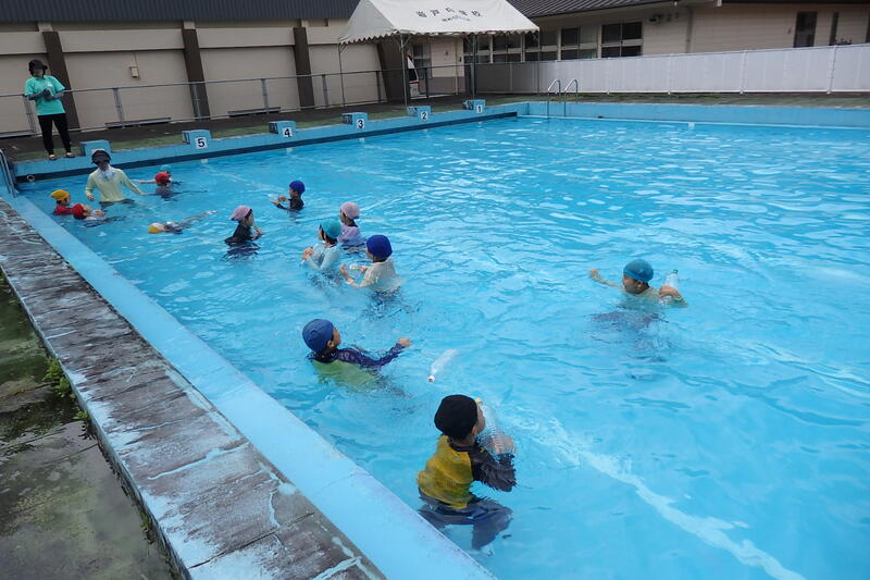 3・4年生も水の中で浮く練習をし、ペットボトルを使って命を守る方法を学びました。
