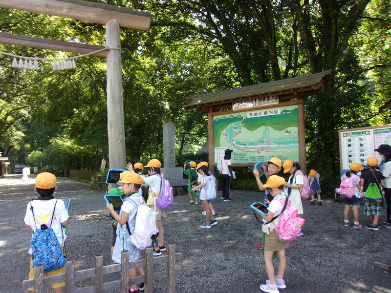 学校の隣にある天岩戸神社の秘密をたんけんすることができました。