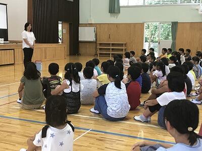 7月10日(火)今日は全校集会が行われました。校長先生からワールドカップで活躍したのは日本選手だけでなくゴミ拾いをした日本人サポーターやロッカールームをきれいにした控え選手がいたことを紹介され、チームワークの大切さを子どもたちに伝えてくださいました。その後に、門前町通りの通行について生徒指導主事から話がありました。最後に陸上と空手の表彰がありました。